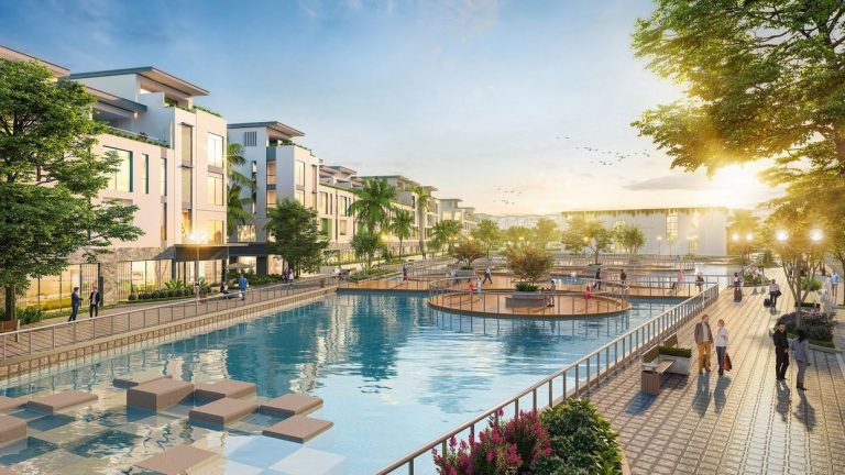 - Cảnh quan khu hồ: Hệ thống hồ nước trong khu đô thị không chỉ tạo điểm nhấn thẩm mỹ mà còn góp phần điều hòa khí hậu, mang lại không gian sống mát mẻ và gần gũi thiên nhiên.