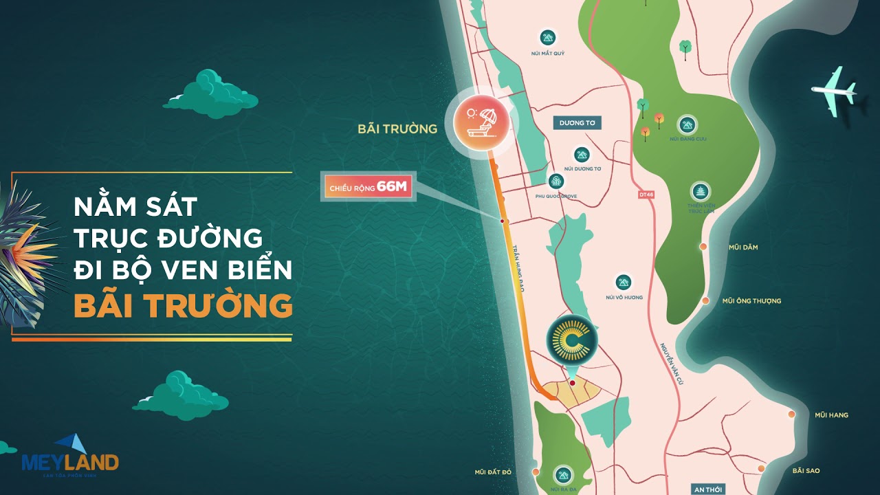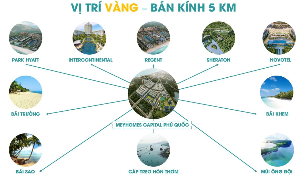 Vị trí Meyhomes Captal Phú Quốc không chỉ thuận tiện cho việc di chuyển mà còn nằm gần các trung tâm kinh tế, dịch vụ và du lịch hàng đầu tại Phú Quốc. Điều này mang lại tiềm năng lớn về giá trị bất động sản và khai thác thương mại.